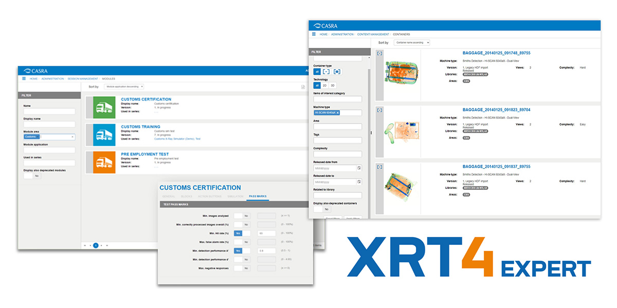 Besides being single-view, dual-view, and 3D CT compatible, XRT5 supports the computer-based training and testing of security officers in various areas of operation. Apart from the standard cabin and hold baggage there is cargo, mail, air supply and staff training, as well as even large-scale truck screening in the area of customs. More areas are added regularly, so get in touch to learn more.