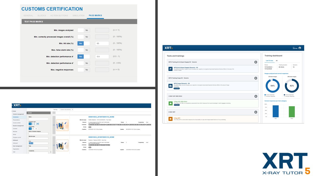X-Ray Tutor5 (XRT5) is an all-encompassing training and testing solution. The software is the designated successor of XRT4. The features for image interpretation allow you to select, train and test X-ray security officers