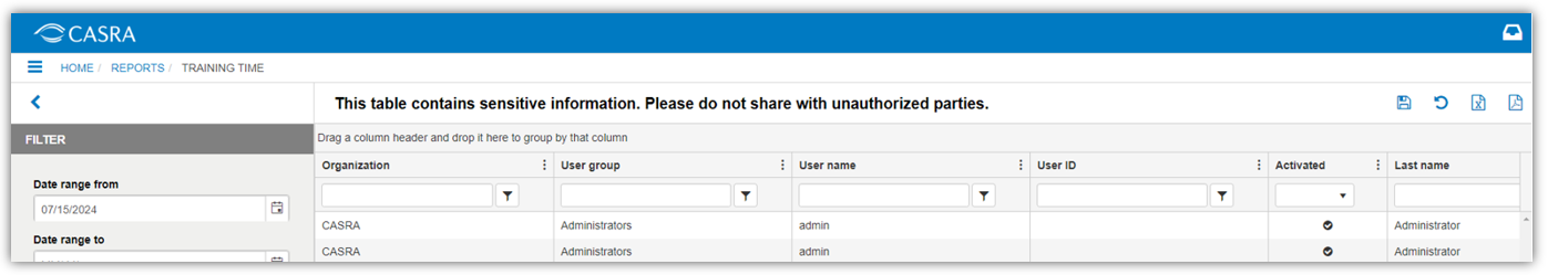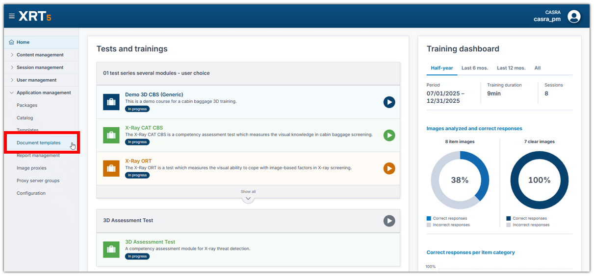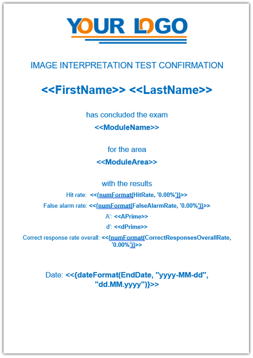 This feature is a new addition to our product. Standard templates for the three reports “Training time”, “Image test result summary” and “Theoretical course summary” are now available. They can be downloaded as Doc Word files and styled and designed as required using the data fields provided. For example a corporate font along with logos, signatures and other authority-issued layouts can be designed. These customized standard templates are uploaded to XRT. In the respective reports, selected sets of data can be printed as neatly designed documents in either Word Doc or PDF format. This feature can be used completely independently: you can download the standard templates themselves and design them according to their requirements. However, if there are complicated documents to be created, i.e. including calculations of different fields, please don’t hesitate to get in touch so we can help you setting them up. If you want to use this feature, please get in touch with customer relations and sales (customerrelations@casra.ch). It’s a paid feature and it will not be active by default.