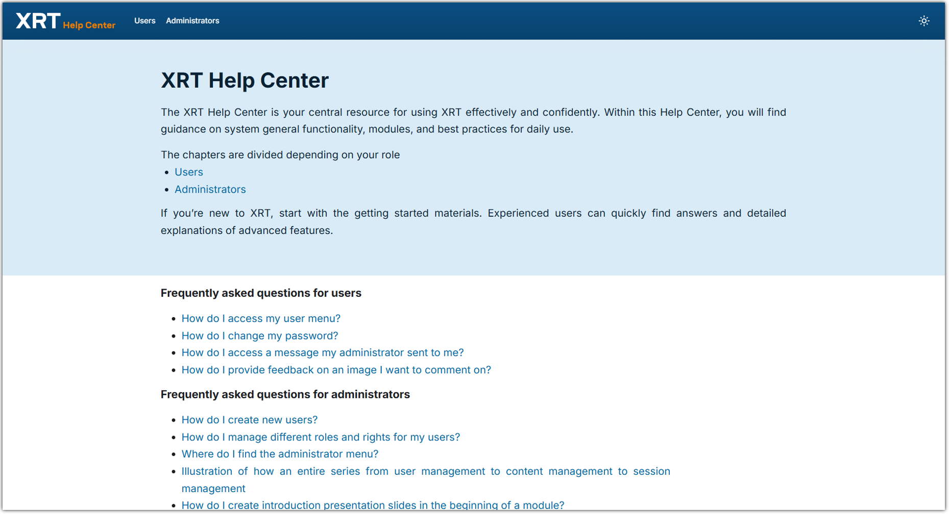 Previously, the XRT manual was managed using PDF help files uploaded to the HELP section in XRT. This was now converted to a secure but standardized documentation platform and is fully integrated into XRT.