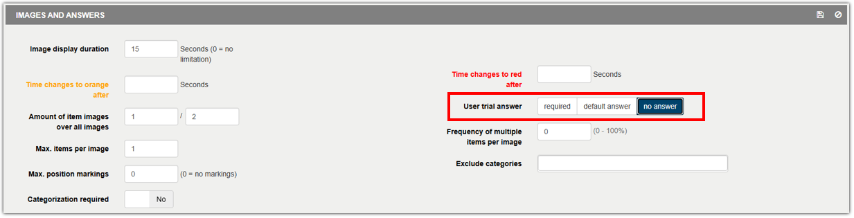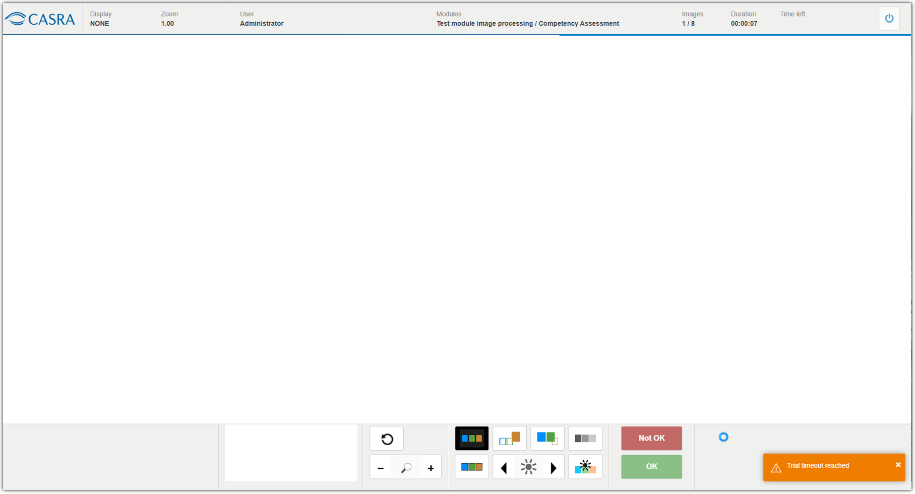 It is now possible for administrators to set a different evaluation method for test modules which deems images that were not evaluated within the set time limit as ‘wrong’. Images are marked as ‘wrong’ when duration of either the trial or the module has run out. In case of the module duration has run out, all remaining images are set as ‘wrong’.