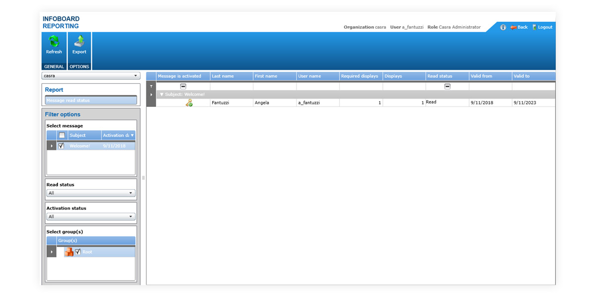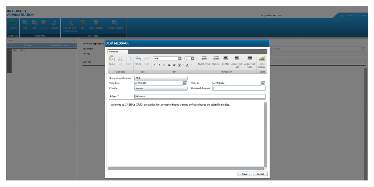 Infoboard is a tool that allows a very comfortable management of the information flow within your institution: create messages to announce upcoming changes in regulations, new threats, company news, or any other important information.