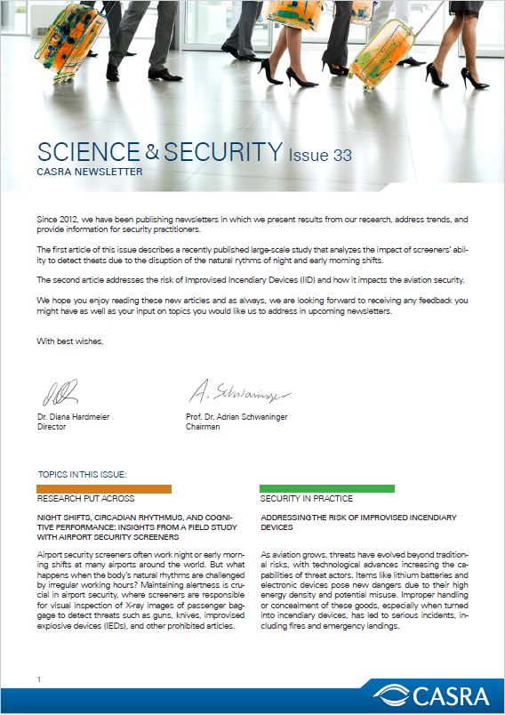 SCREENER PERFORMANCE IN REMOTE VERSUS LOCAL CABIN BAGGAGE SCREENING Remote cabin baggage screening (RCBS) has has gained traction in airports worldwide, offering advantages over traditional local screening (LCBS): RCBS allows screeners to work in quieter, office-like settings, improving staffing and resource allocation. But does it also enhance screener performance? A recently published CASRA study answers this important question by analyzing a large dataset of threat image projection (TIP) data from LCBS and RCBS. ENHANCING AVIATION SECURITY: A SUCCESSFUL COLLABORATION BETWEEN THE GERMAN FEDERAL POLICE, THE EGYPTIAN CIVIL AVIATION AUTHORITY, AND CASRA We are excited to share an interview with Thomas Seifert, Liaison Officer of the German Federal Police (BPOL) at the German Embassy in Cairo. Joined by his assistant, Tamer Saleh, Seifert provides insights on a successful partnership between BPOL, the Egyptian Civil Aviation Authority, and CASRA to enhance aviation security in Egypt, showcasing the power of expertise, effective computer-based training technology, and intercultural collaboration.